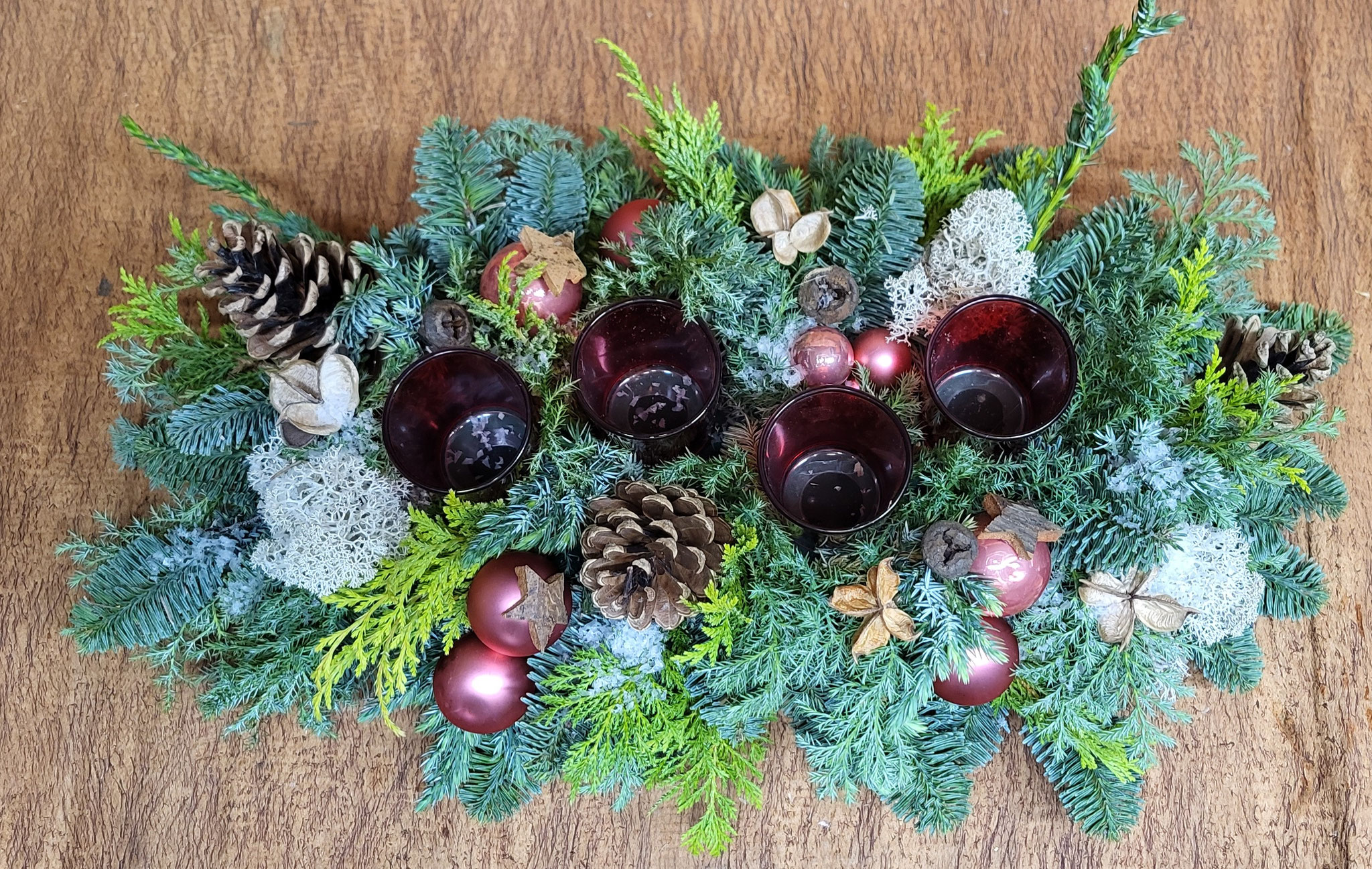 Ook dit jaar maken we weer een prachtig Adventsstuk. Zo mooi te decoreren als je zelf wilt. Vele kleuren versiering en diverse soorten groen naar eigen smaak toe te passen. En natuurlijk vier waxine lichtjes.